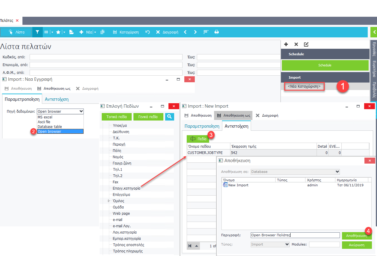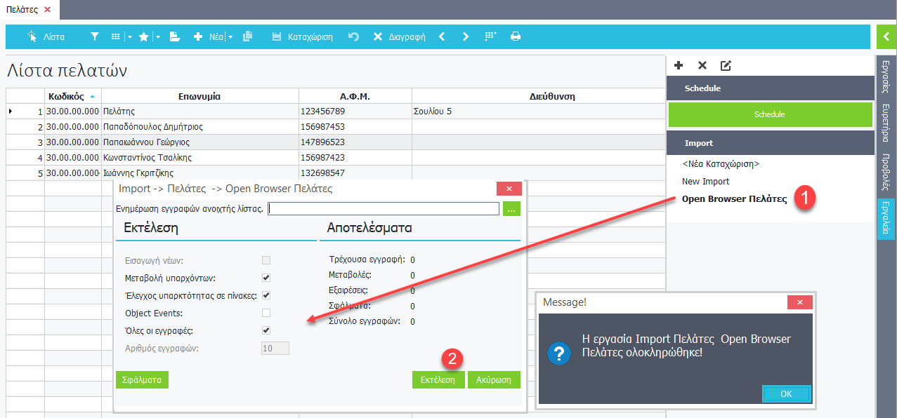 Στο αρχείο των πελατών, από τα Εργαλεία Import της Sidebar:
