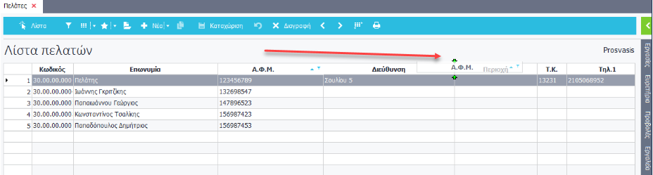 • Αυξομείωση πλάτους στηλών προκειμένου να τοποθετήσετε «βολικότερα» τις στήλες των πληροφοριών της λίστας.