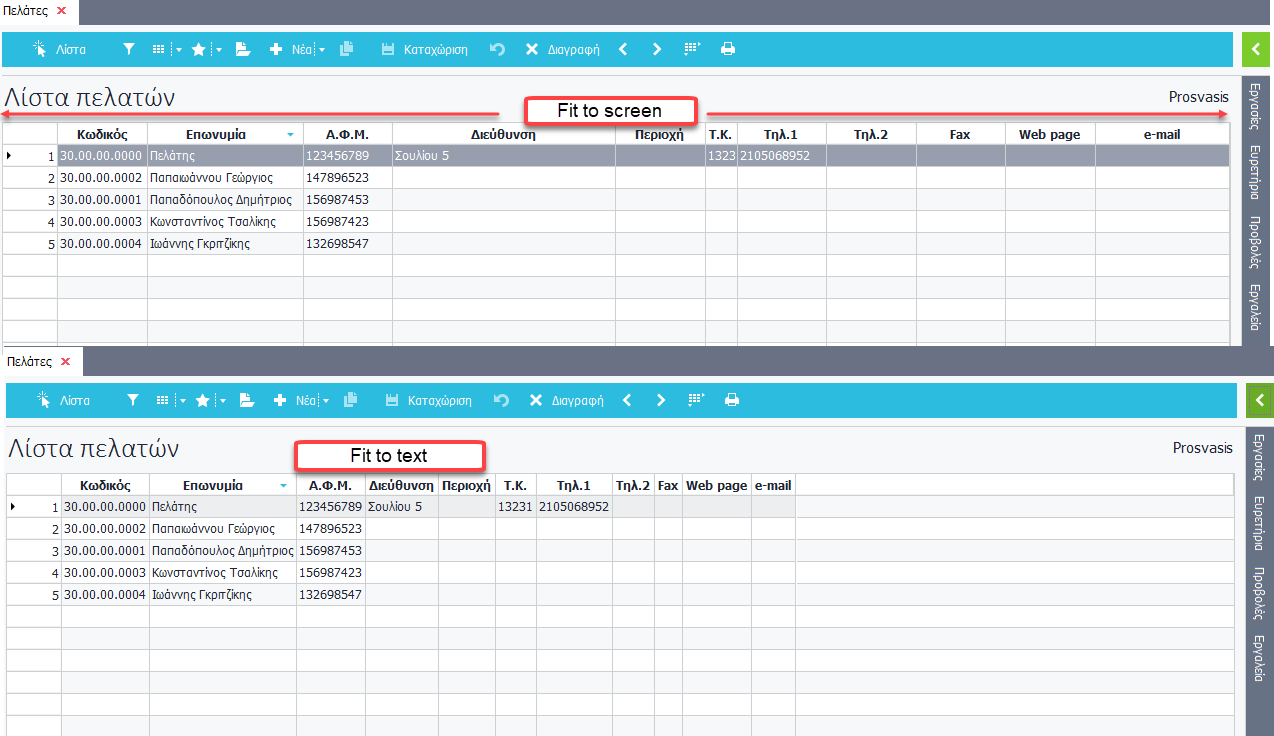 | - Ο χειρισμός Fit to Screen δίνει βέλτιστο πλάτος σε όλες τις στήλες της λίστας ανεξαρτήτως της στήλης στην οποία εφαρμόστηκε.