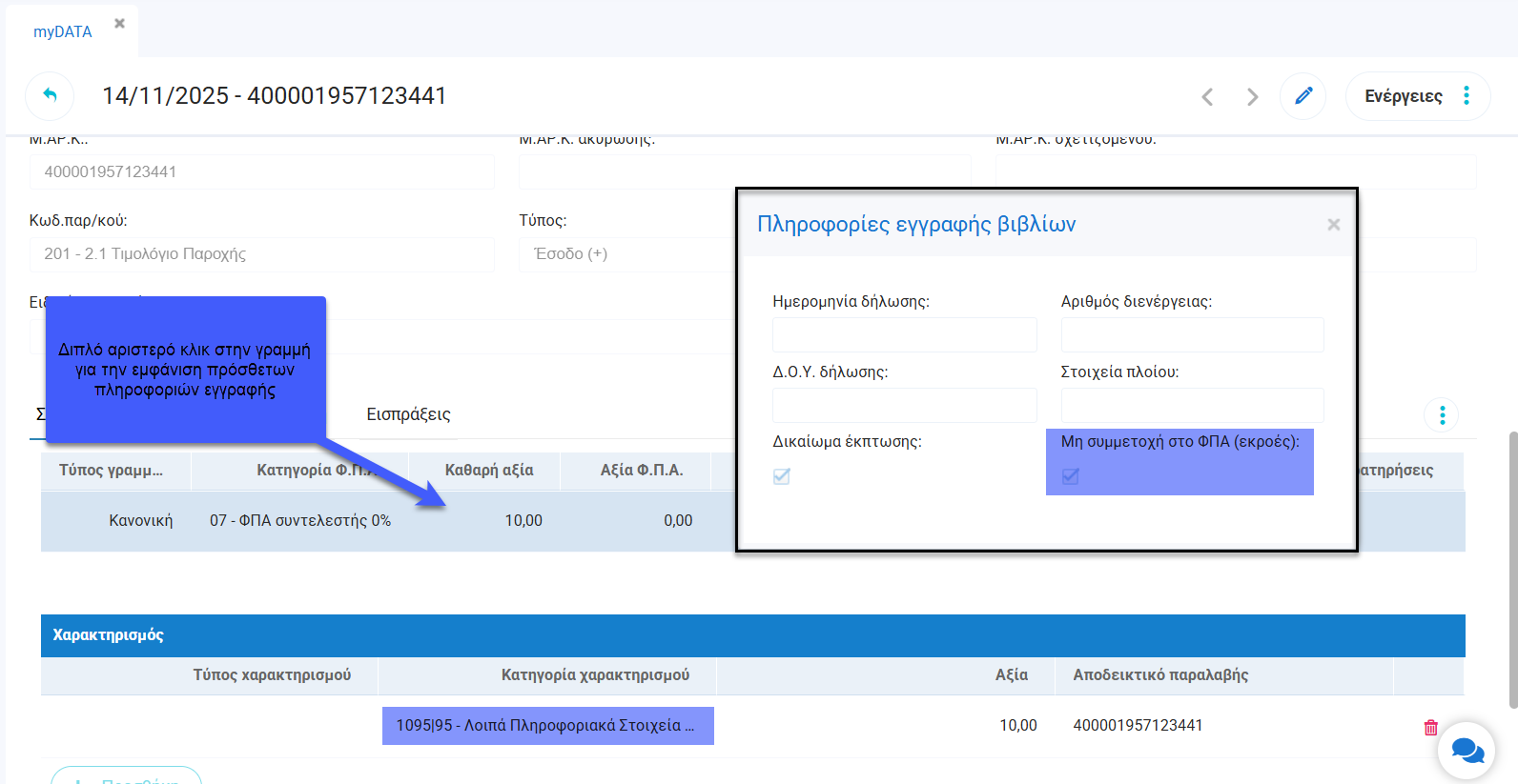 Στην γραμμή της σύνοψης πατώντας 2ο αριστερό κλικ εμφανίζονται πρόσθετα στοιχεία για την εγγραφή.