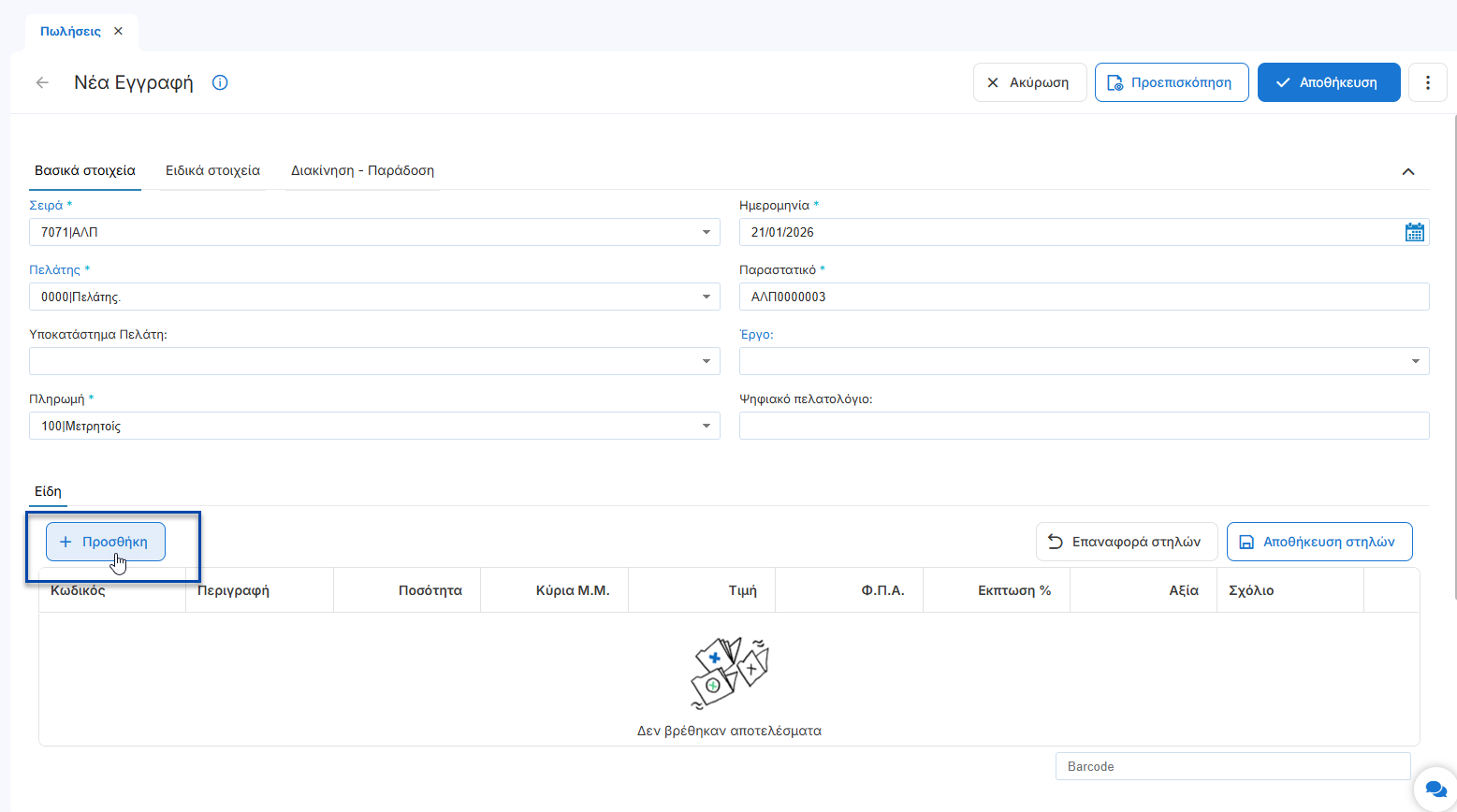 Η λειτουργικότητα επιτρέπει την καταχώρηση και διαχείριση παραστατικών μέσα από Νέους Τύπους παραστατικών Πωλήσεων
